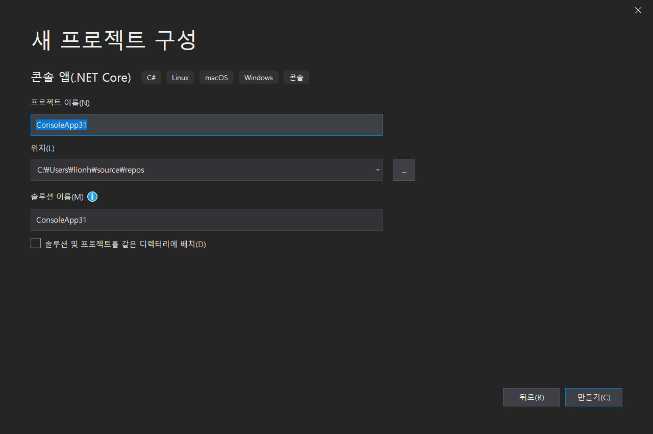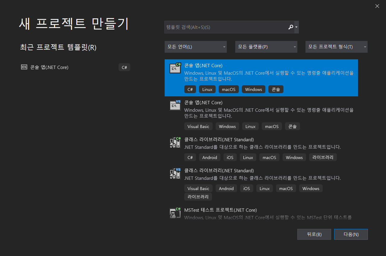 콘솔앱 클릭.
