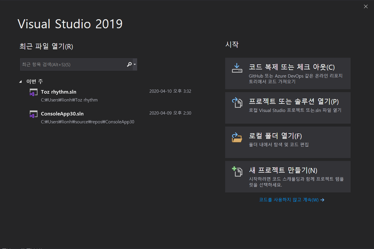 비쥬얼 스튜디오를 켜줍니다.