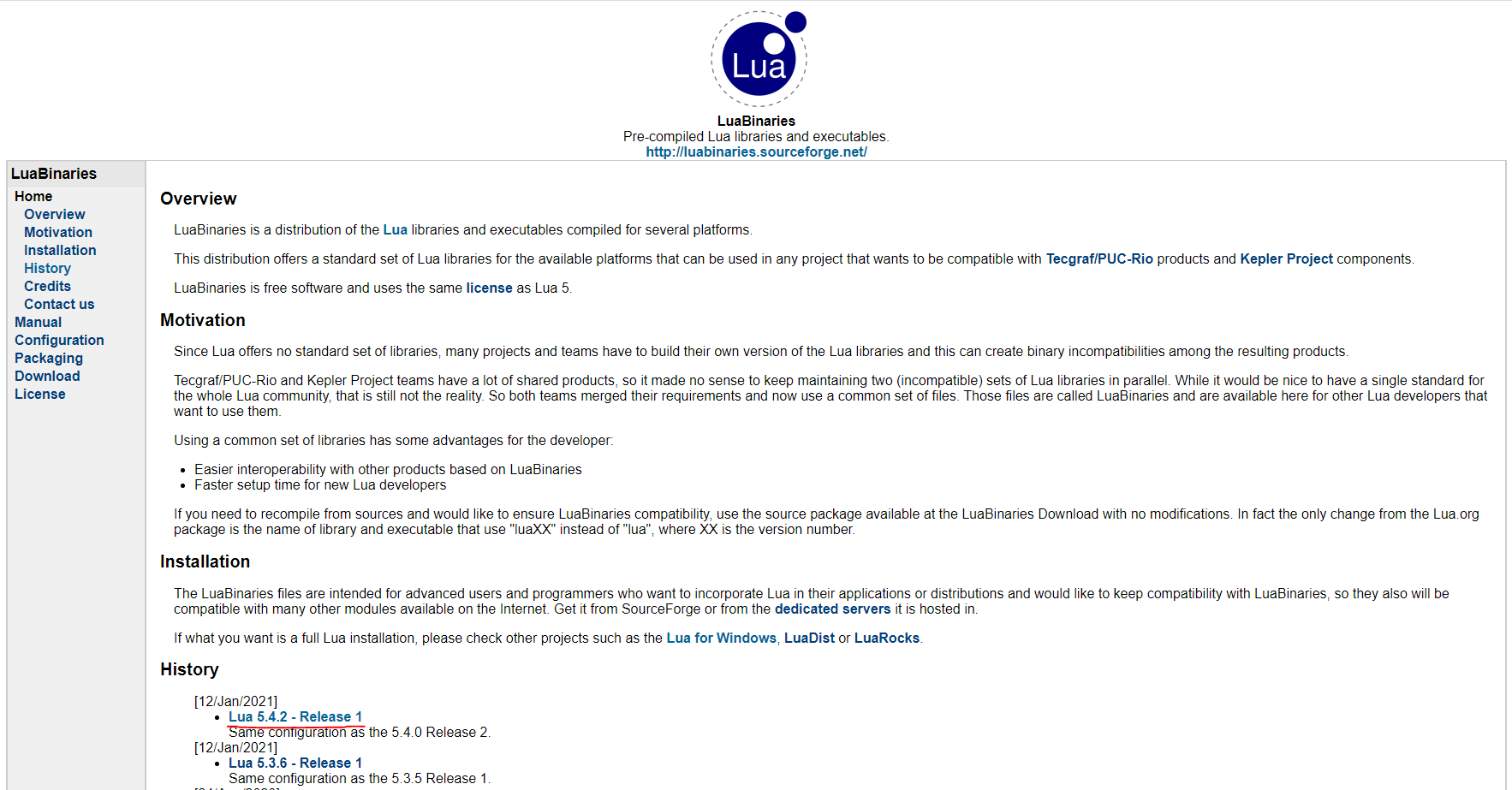 3. History에서 Lua 최신버전을 클릭해줍니다.